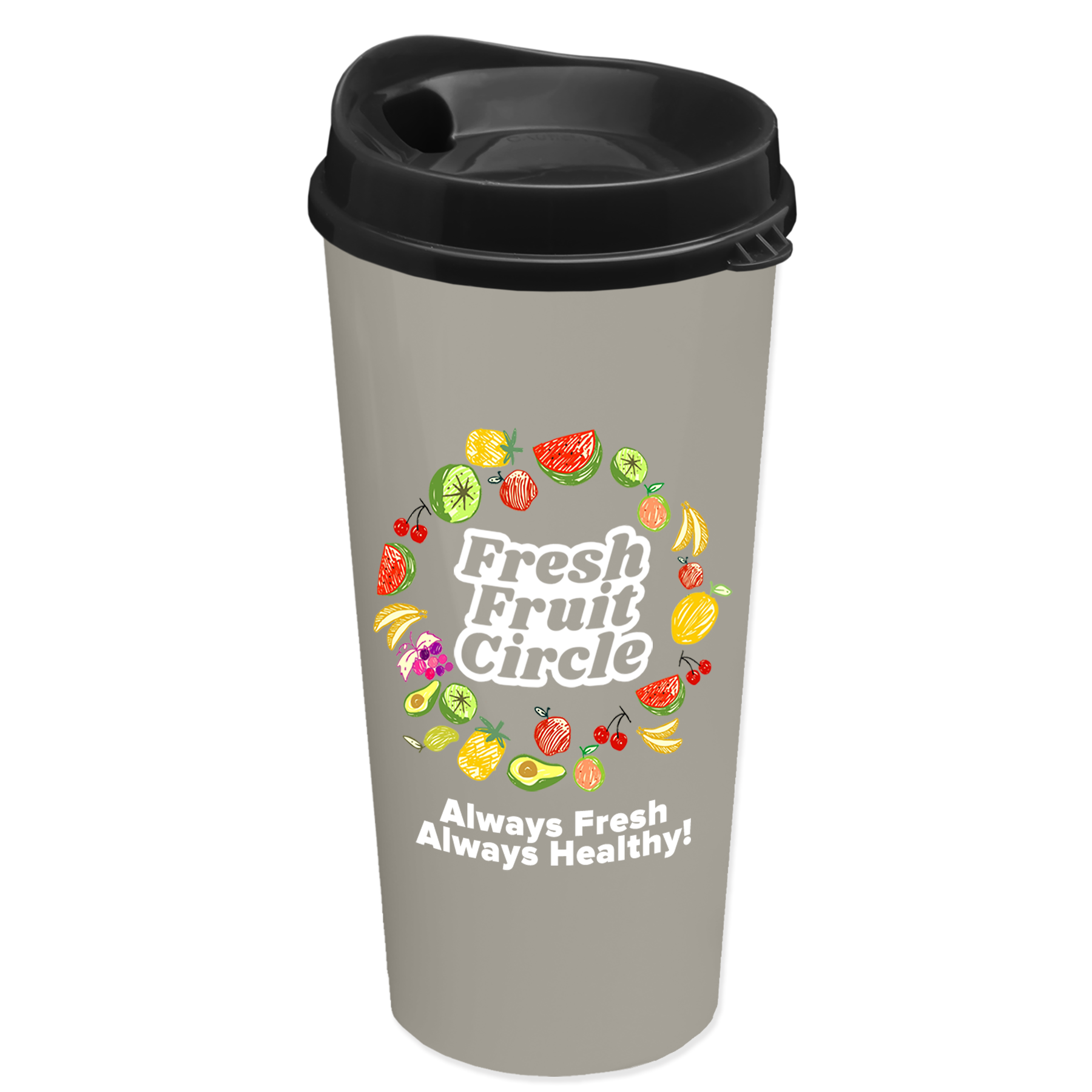 - Outer cup made from 50% post-consumer recycled PP; liner is made from 100% post-industrial recycled PP; lid is made from 40% post-industrial PP