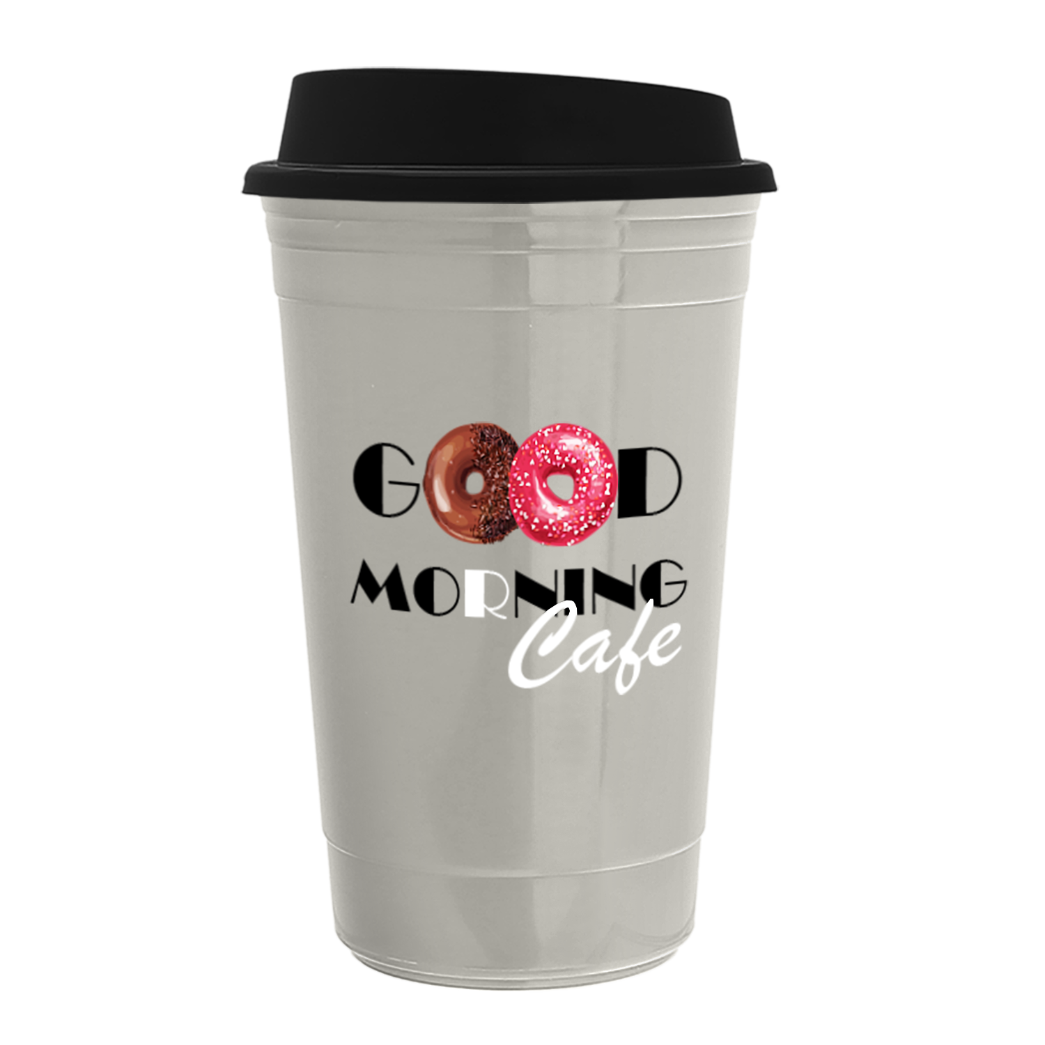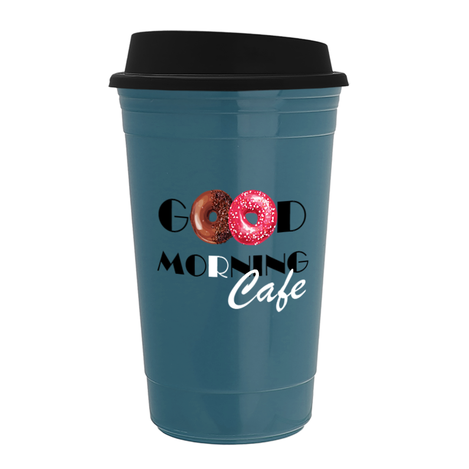 Enjoy your favorite hot drinks on the go with this American-made double-wall insulated 16 oz. travel cup featuring a convenient sip-through lid. Its compact design fits most vehicle cup holders, keeping your coffee warm throughout your commute. Mix and match cup and lid colors to reflect your brand’s personality.